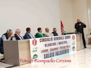 “Rilanciare l’industria: lavoro, sviluppo e futuro per il Sulcis Iglesiente”: è il tema del Consiglio Generale Sardo promosso dalla Federatzione Sarda Metalmeccanicos (FSM CISL), che si è tenuto ieri pomeriggio nella sala convegni Fratelli Fois in via E. Fermi 9, a Portoscuso. L’obiettivo è quello di porre al centro dell’attenzione il tema del rilancio industriale del Sulcis Iglesiente, un’area che necessita di politiche concrete per la sua crescita economica e per la tutela del lavoro. E’ stata un’importante occasione di confronto e di proposta sul futuro del territorio tra istituzioni, organizzazioni sindacali e rappresentanze del territorio.