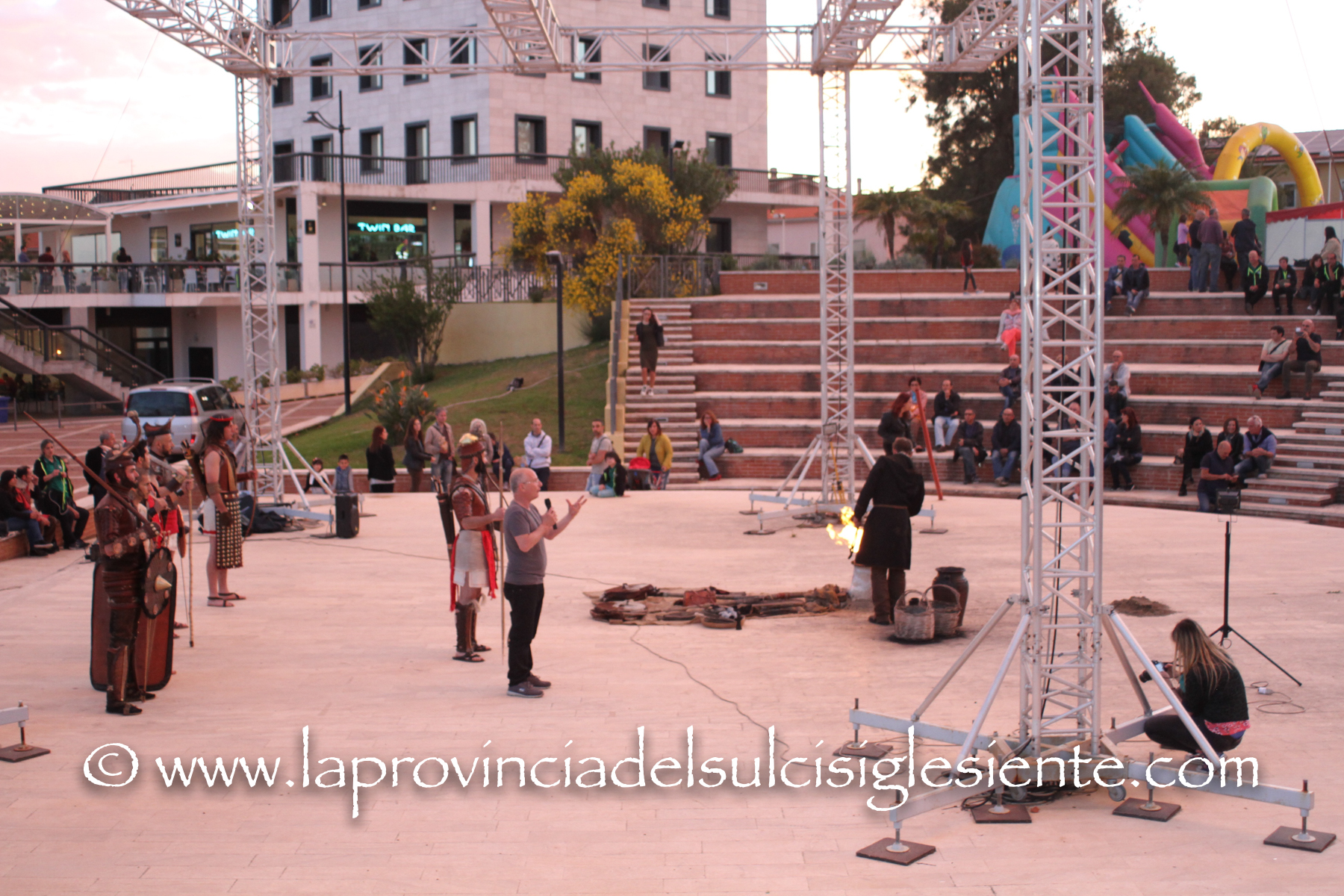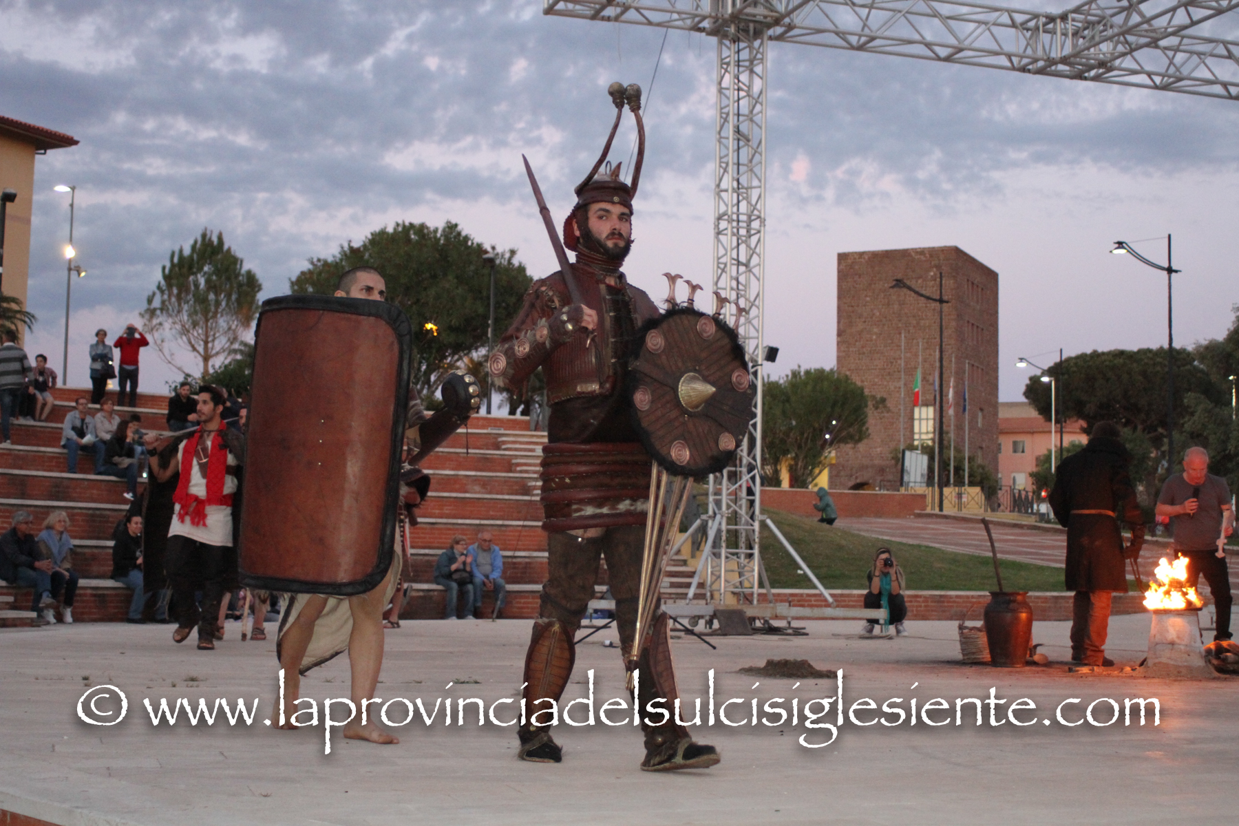 Ieri ha riscosso grande interesse e partecipazione lo spettacolo della “fusione di lame nuragiche” messo in scena della coop. “Gli ultimi nuragici” con Andrea Loddo di Lanusei (costumista e attore del recente film Nuraghes) nell’anfiteatro di Piazza Marmilla (al quale si riferiscono molte delle fotografie allegate). Il noto artista ha fatto fare al folto pubblico un salto nel passato facendo rivivere la civiltà nuragica con la creazione dei bronzetti e lame in diretta realizzate con la fusione a fuoco. Relatore dell’esibizione Pierluigi Montalbano (scrittore, studioso di archeologia, presidente dell’Associazione culturale Honebù di Cagliari e direttore del “Quotidiano on-line di storia e archeologia”).