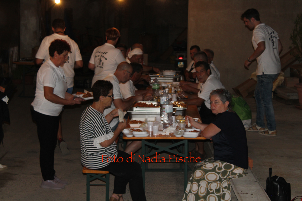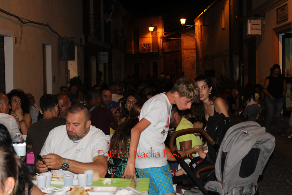 Alle 21.00 uno dei momenti più attesi, l’inizio della cena a base di prodotti tipici locali, allestita lungo il Centro storico “Su Addeu”, nelle vie Cagliari, Santadi e San Pietro. Sono state diverse centinaia le persone che, prenotate, hanno partecipato alla cena, conclusa con la distribuzione dei dolci tipici locali. La serata è stata animata dal dj Checco Milani.