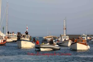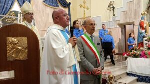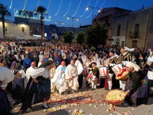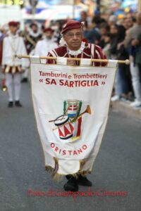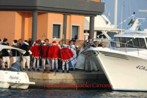 Ad arricchire il momento, la consegna a Rosalba del gagliardetto della città e di un paio di scarpe nuove da parte dell’amministrazione comunale: un dono simbolico, perché ogni viandante ha bisogno di scarpe per proseguire il cammino, e Portoscuso ha voluto accoglierla così, per poterla accompagnare anche dopo, “passo dopo passo” (che è il titolo della tesi di sociologia etnografica che scrisse Rosalba dopo il Cammino di Santiago).