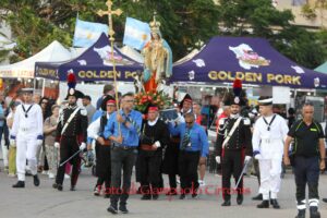 Una mattinata intensa ed emozionante ha visto l’arrivo a Portoscuso di Orme d’ombra, il cammino di sensibilizzazione ideato e portato avanti dall’artivista viandante Rosalba Castelli, presidente di Artemixia APS ETS. Rosalba è stata accolta al porto dall’assessore al Turismo e allo Sport Attilio Sanna e, poco dopo, dall’assessora ai Servizi sociali Monica Napoli, dall’assessora alla Pubblica istruzione Ornella Pilisio, dalla dirigente scolastica Paola Grosso dell’Istituto Comprensivo Vittorio Angius, da don Antonio Mura e da numerose realtà associative locali: Associazione culturale Vergine d’Itria, HHT Italia, Croce Azzurra, Avis Portoscuso, Gruppo Folk Sa Turri, Auser Portoscuso, Coro polifonico femminile di Portoscuso, Pro Loco Portoscuso.