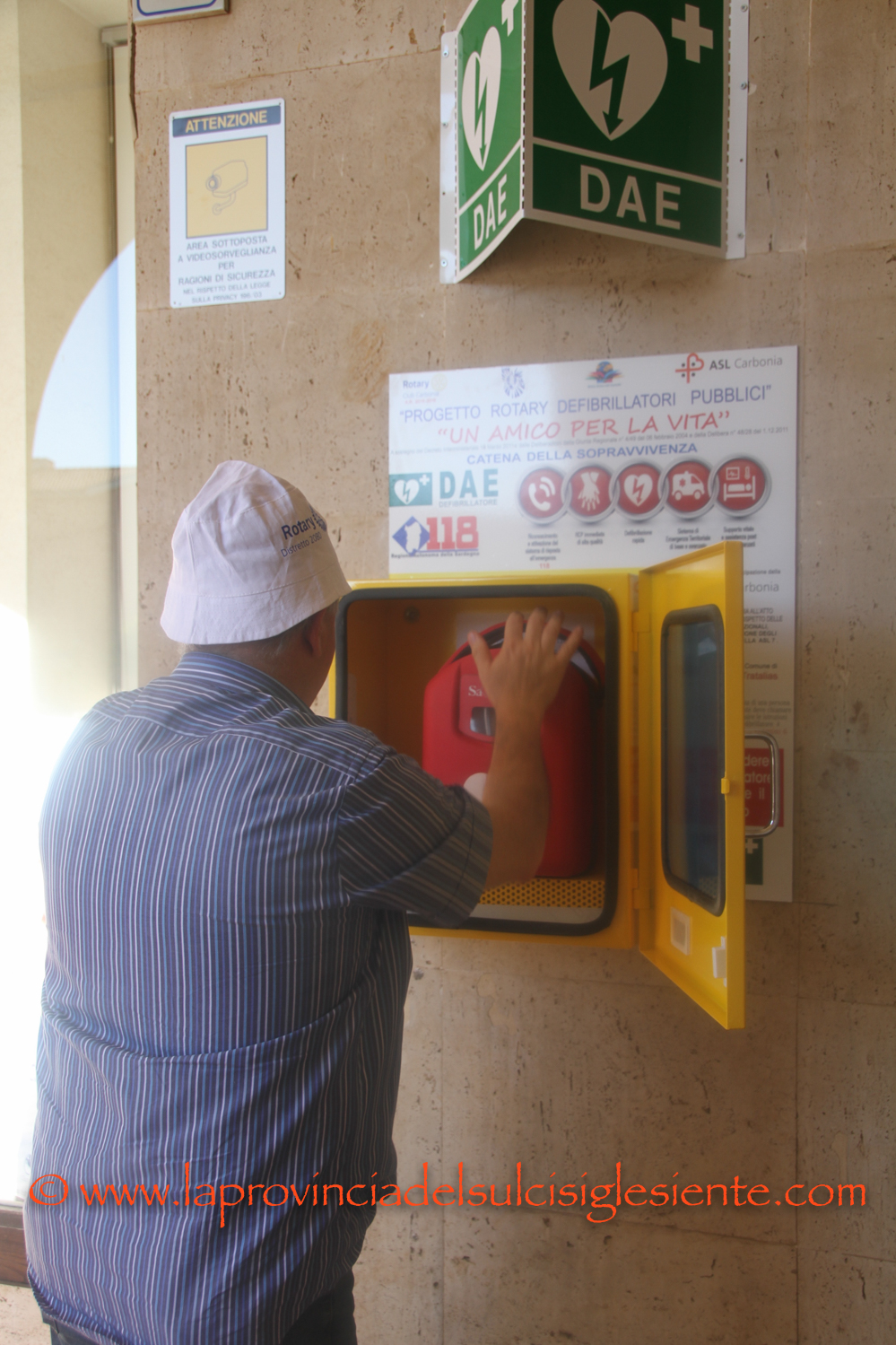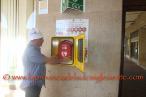 La stanza-ambulatorio è fornita di elettrocardiografo e defibrillatore.