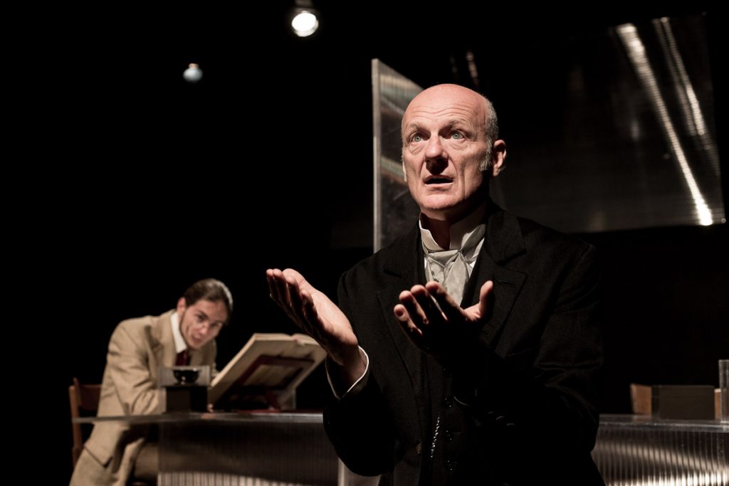 La narrazione nello spettacolo corre sul filo dell’ironia, a tratti diventa persino comica, per arrivare a un sentiero sempre più stretto e condurre l’uomo sull’orlo di un abisso.