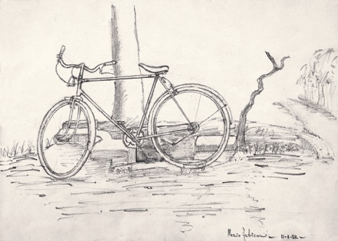 «Segni in bianco e nero di matita e colori tenui di pastello, tracciati su fogli ingialliti – scrive Bepi Vigna nella sua presentazione -. Il tempo riemerge in frammenti da una vecchia cartella. La madre che stira sul tavolo da cucina, Mariolino che disegna, la radio che racconta. Ciclisti e calciatori… Coppi e Bartali, Tex Willer, ritratti insieme a cugini, amici, compagni di scuola. Rita Hayworth accanto a fanciulle desiderate e irraggiungibili… Gli anni Cinquanta furono quelli del miracolo della modernità, l’inizio di un’epoca in cui si poteva di nuovo sognare… C’è questo nei disegni di Mariolino: le tracce di una rivoluzione antropologica».