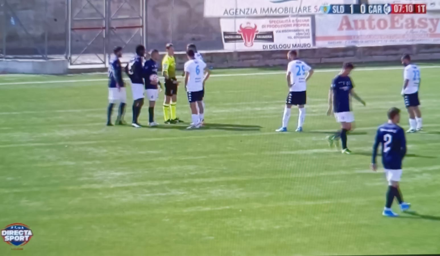 In campo due ex, Niccolò Agostinelli, dall’inizio, e Nicola Serra, nella ripresa. Dopo soli 6′ il Latte Dolce ha sbloccato il risultato: Daniele Bianchi ha battuto un calcio d’angolo, pallone calibrato per la testa di Luis Mukaj che ha incornato alla perfezione, portando in vantaggio i suoi: 1-0.Immediata la replica del Carbonia che al 10’, con capitan Marco Piredda che, sfruttando una palla persa poco oltre la mediana, ha calciato a giro verso la porta sassarese, trovando Kajus Urbietis attento, pronto ad allungarsi e a deviare in calcio d’angolo.