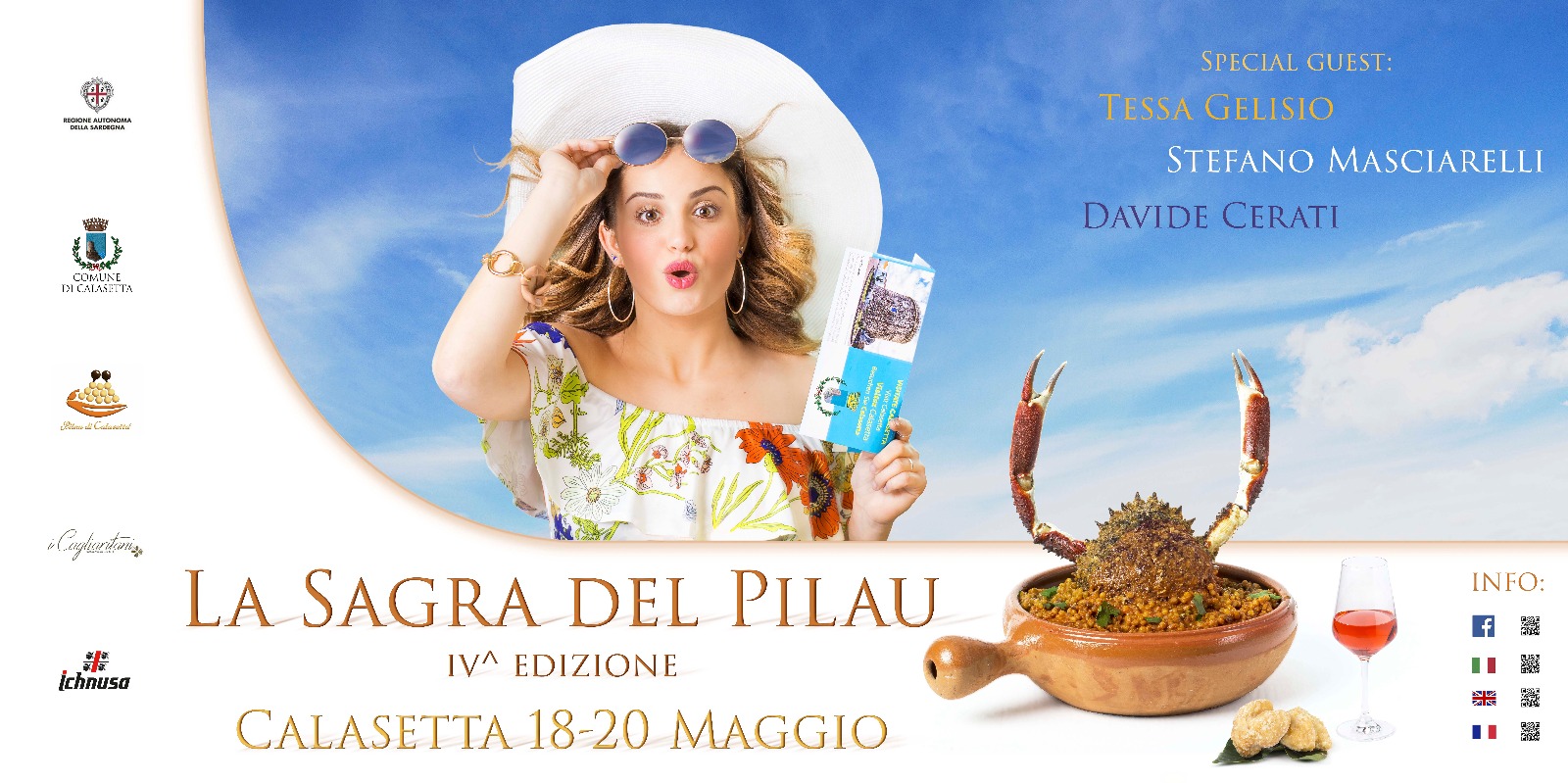 Confermatissima la partecipazione di Tessa Geliso per la giornata di domenica; inoltre non mancheranno i laboratori del pilau, gli showcooking di chef professionisti e amanti della cucina, escusioni lungo la costa, escursioni in barca, trenino turistico, visite alla Torre Sabauda, Museo Macc e Cantina Sociale per degustare il Carignano.
