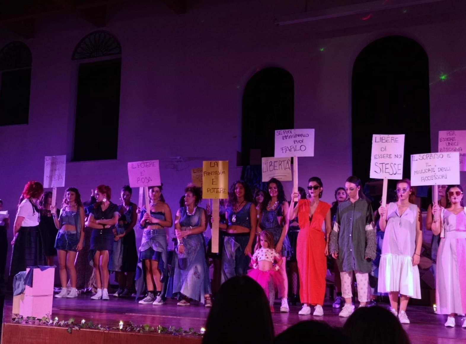 Dal palco stiliste, modelli e organizzatori hanno esibito cartelli con frasi a effetto per lanciare un chiaro messaggio contro lo sfruttamento dell’immagine femminile, esortando le donne a combattere per ottenere libertà e rispetto, nell’ambito lavorativo, sociale, famigliare.