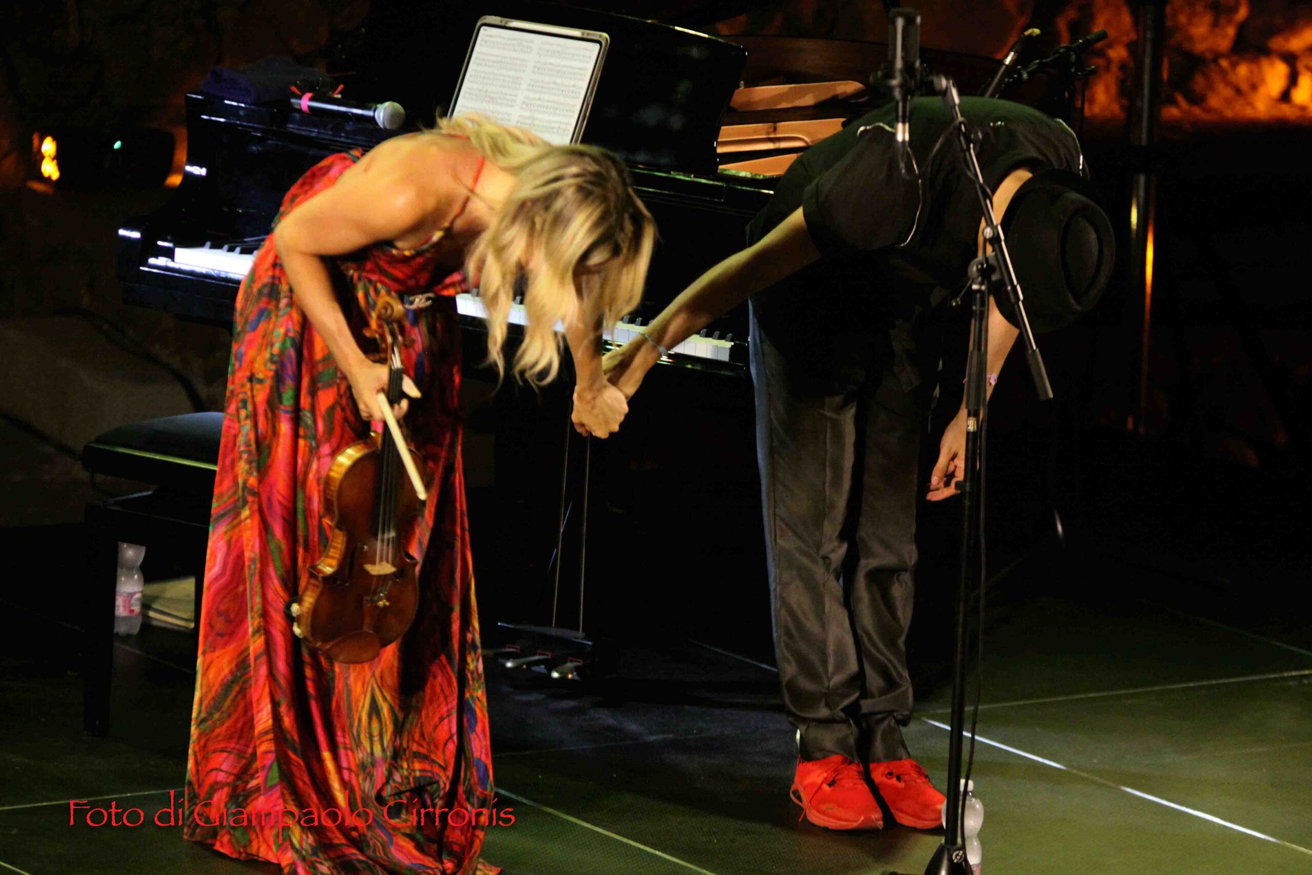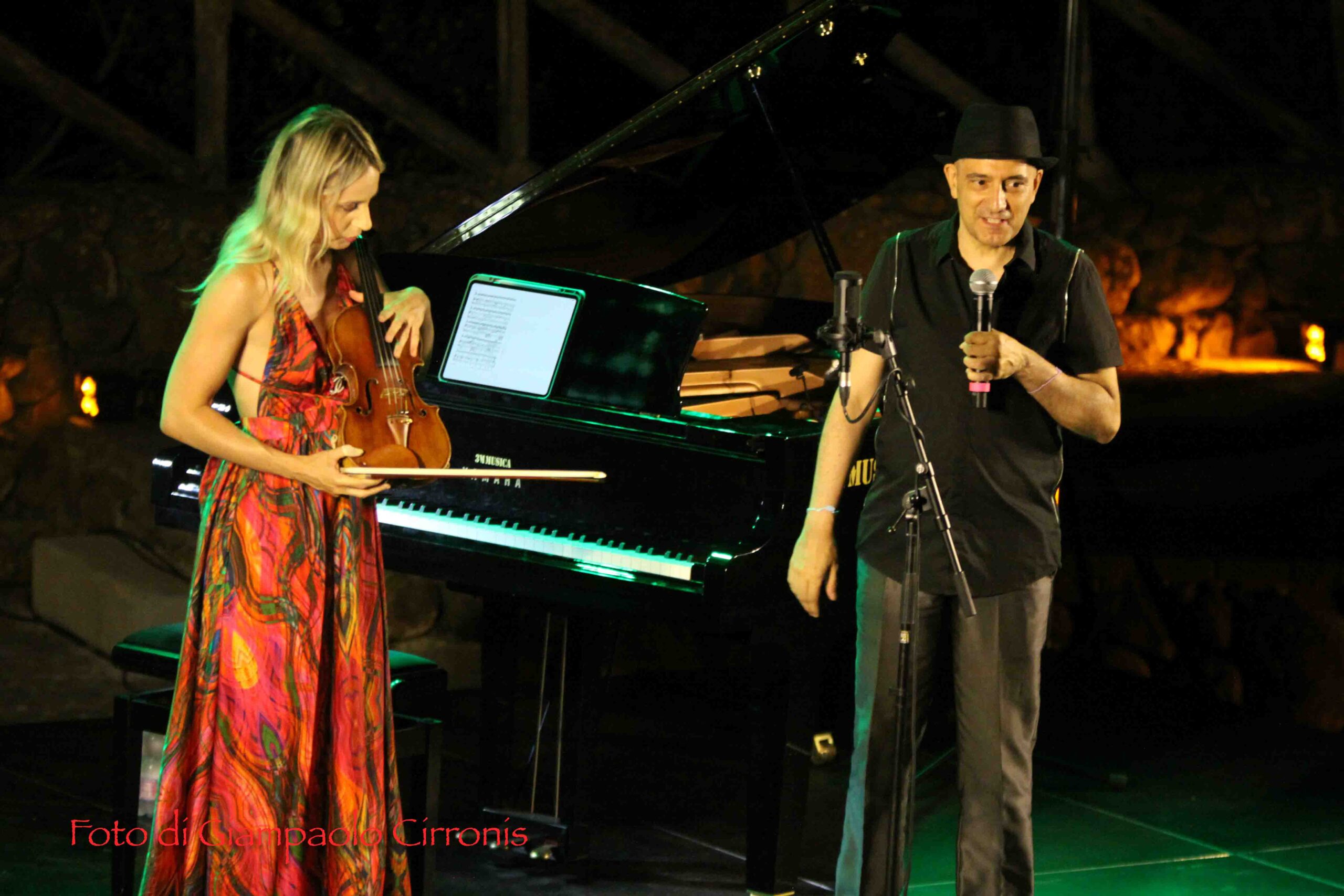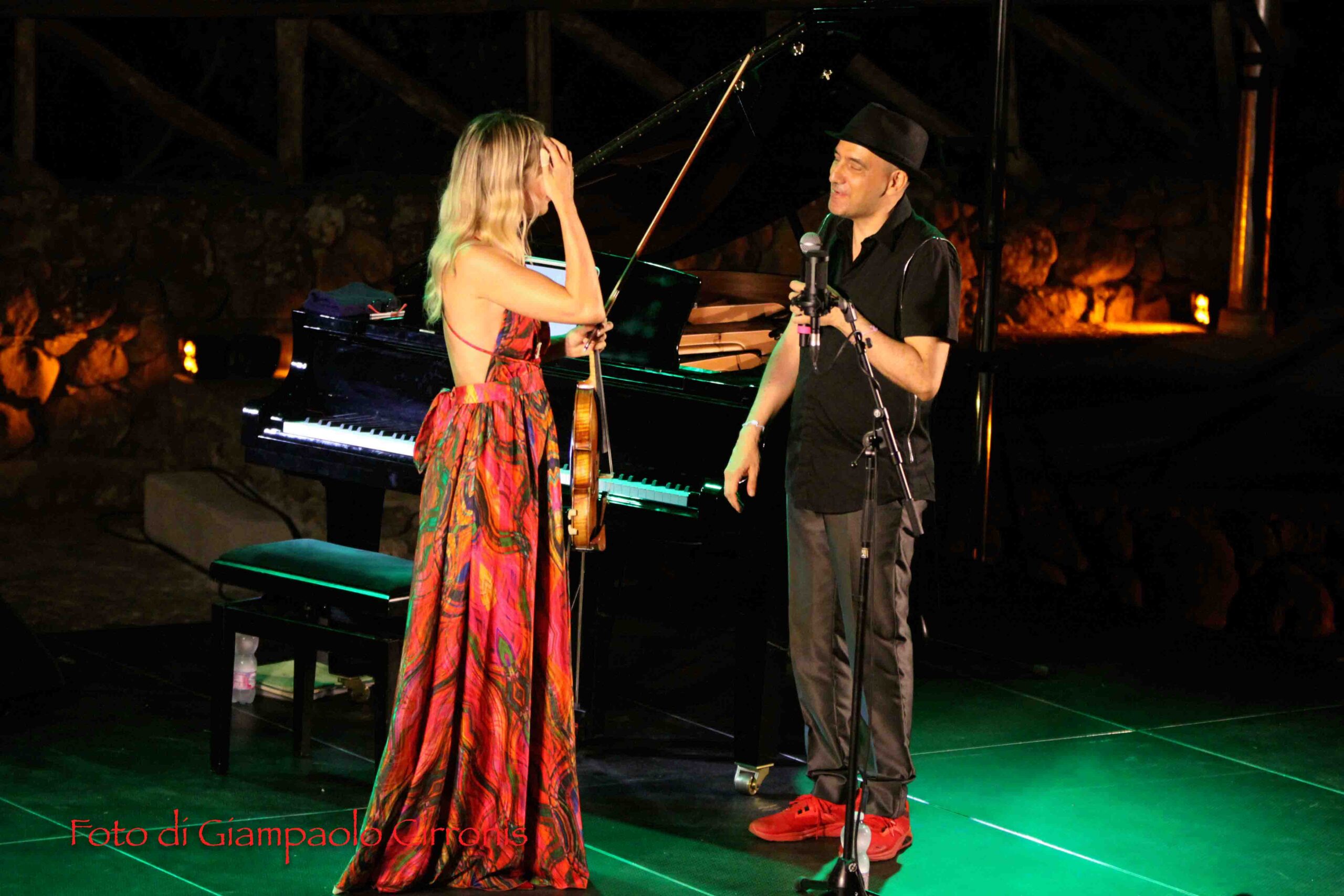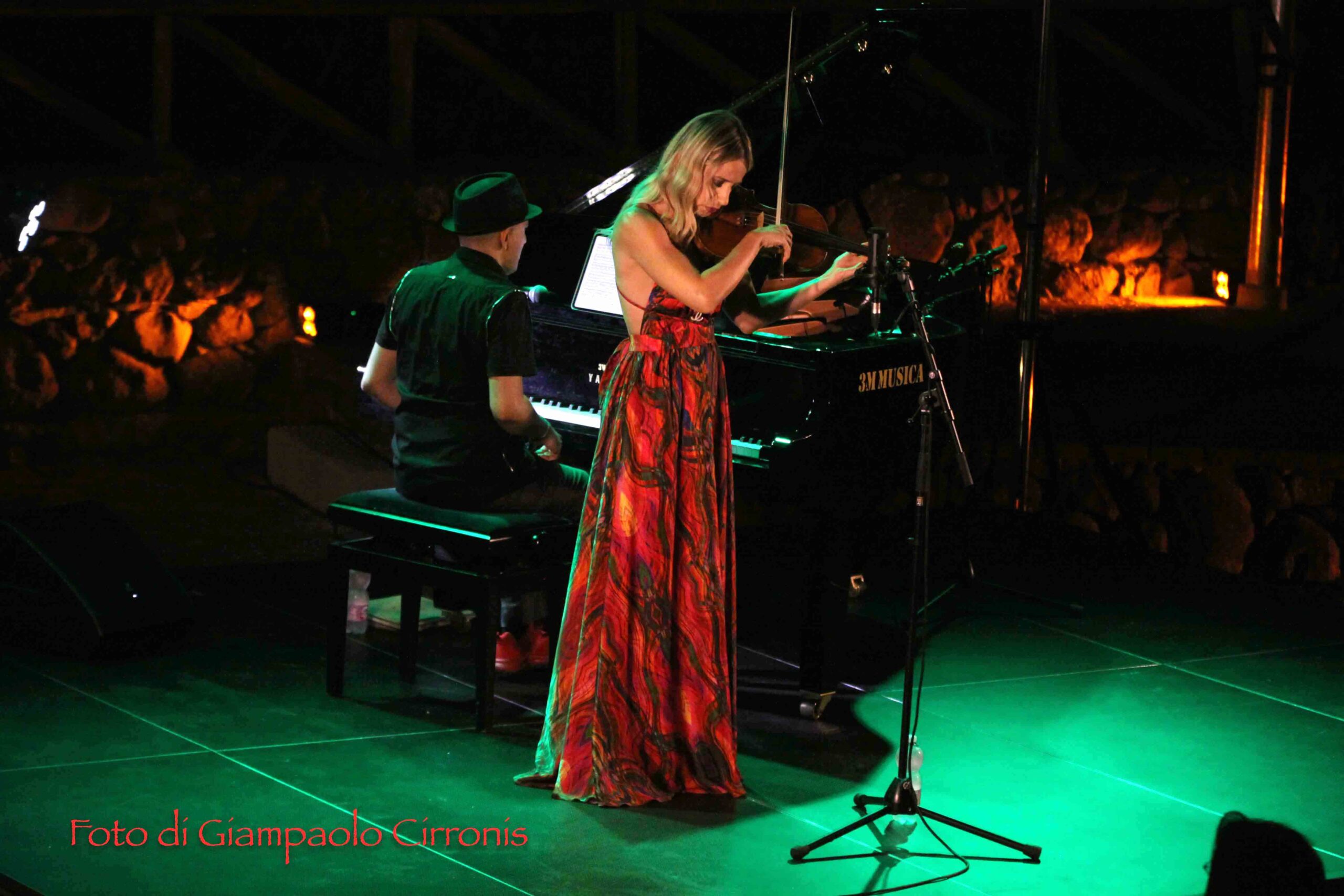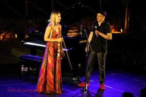I due musicisti hanno conquistato il numeroso pubblico accorso sulle tribune dell’anfiteatro, mostrando ancora una volta una straordinaria maestria nell’unione del virtuosismo del violino di Anna Tifu con la raffinatezza del pianoforte di Romeo Scaccia, in un viaggio attraverso generi e influenze diverse, con una particolare attenzione alle contaminazioni del tango, in un repertorio arricchito da sfumature jazz e classiche. E alla fine hanno concesso al pubblico i graditissimi bis, sottolineando la grande partecipazione in una location straordinaria.