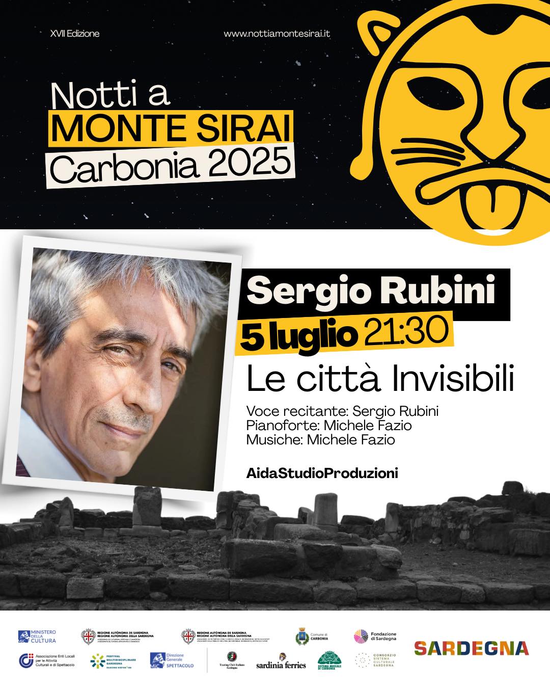 Un classico della letteratura scomposto e ricostruito per la scena Lo spettacolo è in programma sabato 5 luglio, con inizio alle 21.30 Tra arte, cultura e letteratura, Carbonia è pronta ad aprire il sipario della XVII edizione del Festival internazionale ‘Notti a Monte Sirai’. L’estate 2025 porta sul sito archeologico 4 show eterogenei, ma tutti uniti da quel fascino antico che sa regalare il teatro sulcitano. Il primo appuntamento dell’estate 2025, Le città invisibili, è in programma sabato 5 luglio. Per la prima serata 2025 ‘Notte a Monte Sirai’ propone uno spettacolo che ha come protagonista un’icona del cinema italiano: Sergio Rubini. Attore, regista, scrittore, sceneggiatore, fu scoperto negli anni Ottanta da Federico Fellini e già nel 1990 fu premiato con il David di Donatello per il suo debutto alla regia. Tantissimi i film di successo in cui ha recitato, sia italiani (‘Manuale d’amore’, ‘La stoffa dei sogni’) che stranieri (‘Il talento di Mr Ripley, ‘La passione di Cristo’). Nell’occasione Sergio Rubini porta in scena un grande classico della letteratura quale ‘Le città invisibili’ di Italo Calvino, un testo che ha affascinato generazioni di lettori. Sergio Rubini, accompagnato al pianoforte da Michele Fazio, è la voce recitante di una reappresentazione (Elena Marazzita Direttore di produzione – Aida Studio Produzioni) elegante e sottilmente imprevedibile che, nel giocare sul dettaglio, sulle parole e sulle immagini, accompagna il pubblico in una geometria visiva e sonora di rara bellezza e suggestione. In questa interpretazione i dialoghi fra Marco Polo e l’imperatore dei Tartari Kublai Khan vengono scomposti e ricostruiti, garantendo comunque l’integrità del testo originale. Narrazione, musica e immagini si intrecciano in un’unica partitura, dando sostegno a quel mondo fantasioso e facendolo quasi sembrare realtà.