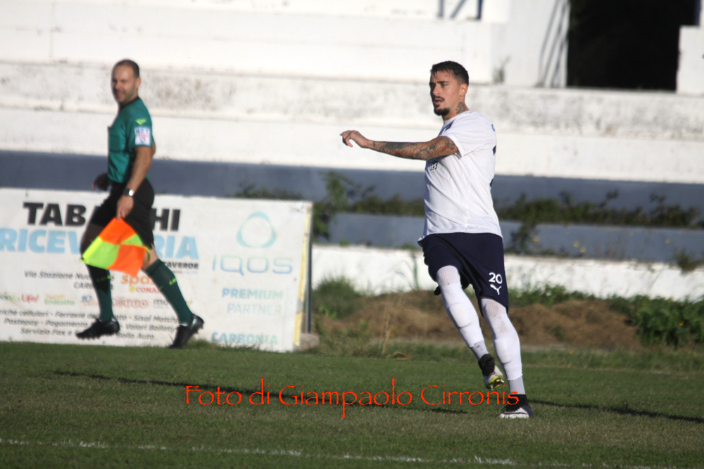 Il Carbonia ha accusato il colpo ma ha reagito subito, ha iniziato a tessere la sua tela dal basso, e dopo soli 5′ ha ristabilito la parità: calcio di punizione oltre la metà campo, pallone filtrante per Nicola Muscas (classe 2005) che si è girato benissimo e ha infilato il pallone alle spalle di Domiziano Tirelli (classe 2006).
