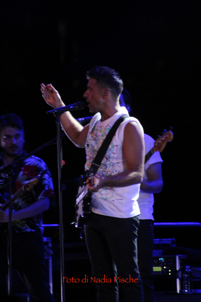 Nella serata di sabato 20 luglio piazza Sella letteralmente traboccante di un pubblico splendido, ha atteso già da alcune ore precedenti all’orario del concerto, il grande Francesco Gabbani. Sul palco un video che anticipa la sua entrata in scena, l’artista racconta le sue mille peripezie per far fronte al down informatico che ha messo ko il mondo dei trasporti portando così all’annullamento di decine di concerti. Non si è perso d’animo e insieme al suo staff si è imbarcato su una monoelica e da Collegno è atterrato in Sardegna. Premiato per la sua tenacia da una vera e propria esplosione di applausi quasi senza fine, il pubblico radunatosi ad Iglesias ha duettato con lui che non ha perso tempo a lanciare messaggi bellissimi contro la guerra, la violenza in genere. Il cantautore polistrumentista toscano, si è soffermato anche sui pericoli che la rete nasconde, condizionando la nostra vita e causando una sorta di insoddisfazione legata al metro di paragone irraggiungibile espresso dai social, tra parole e musica come con i brani “Peace and Love” e “La rete” offre sempre spunti di riflessione.