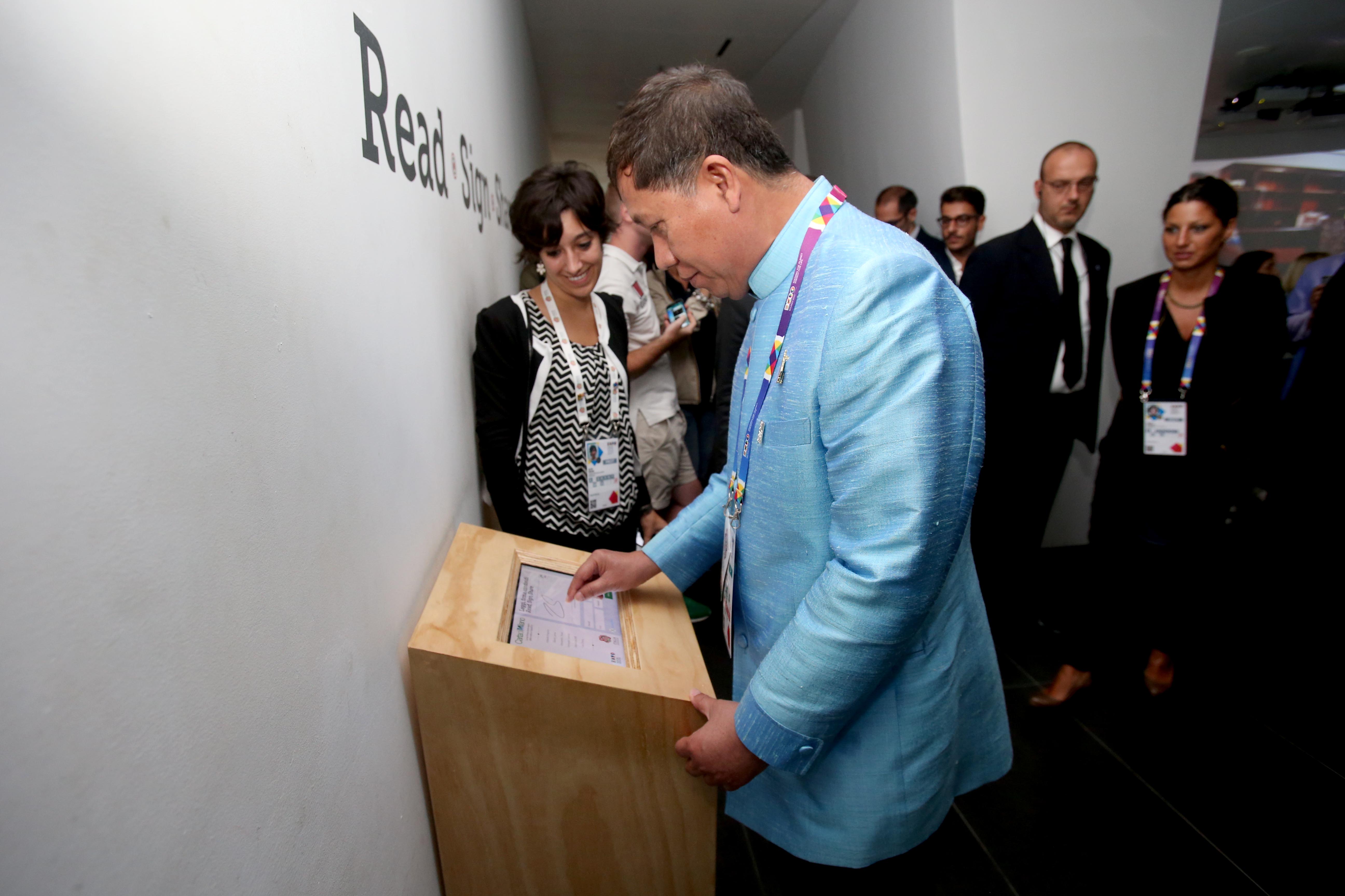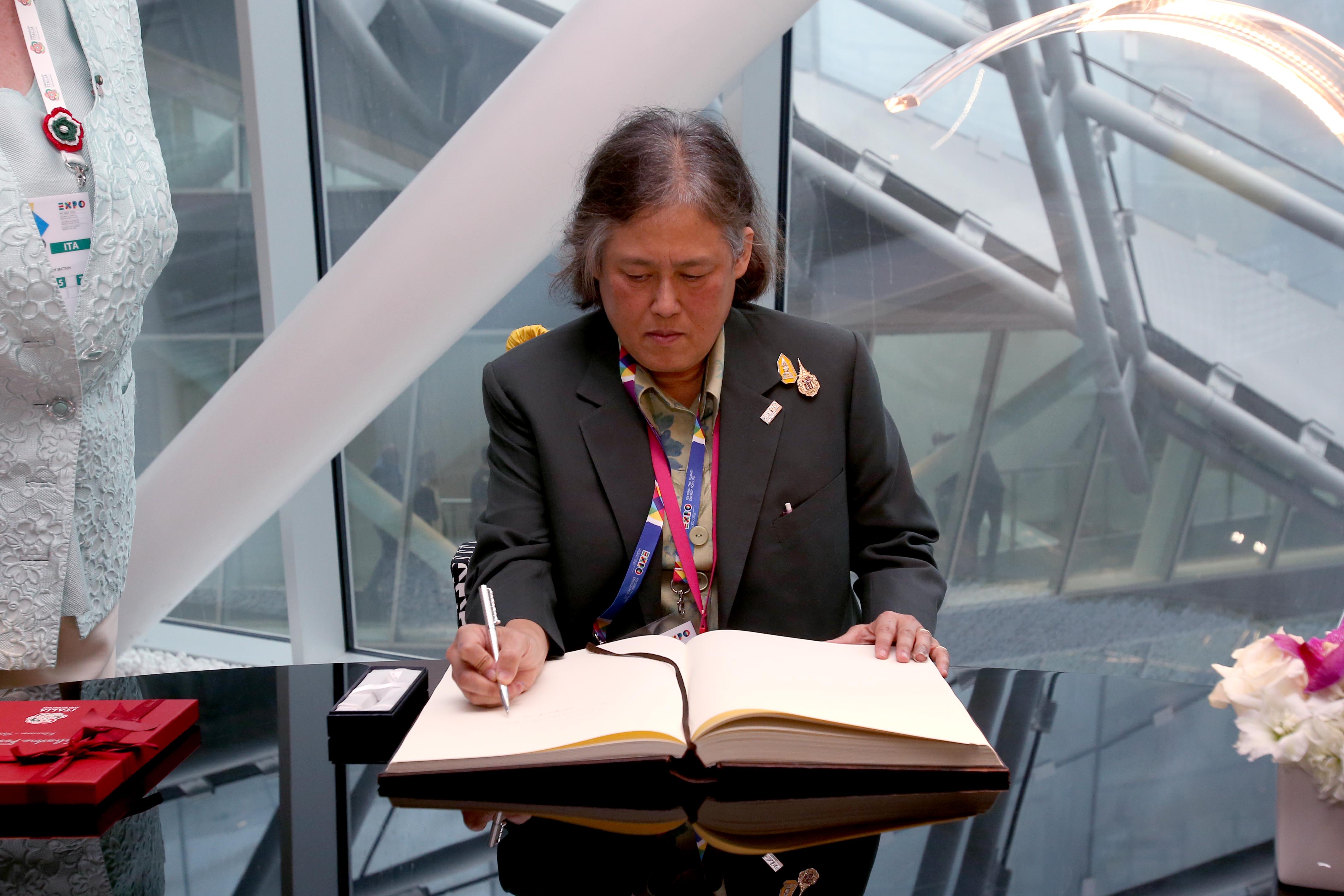 La principessa di Thailandia Maha Chakri Sirindhorn, a capo della delegazione, ha quindi visitato Palazzo Italia, dove il segretario permanente del ministero dell’Agricoltura e delle cooperative thailandese Chavalit Chookajorn ha firmato la Carta di Milano.