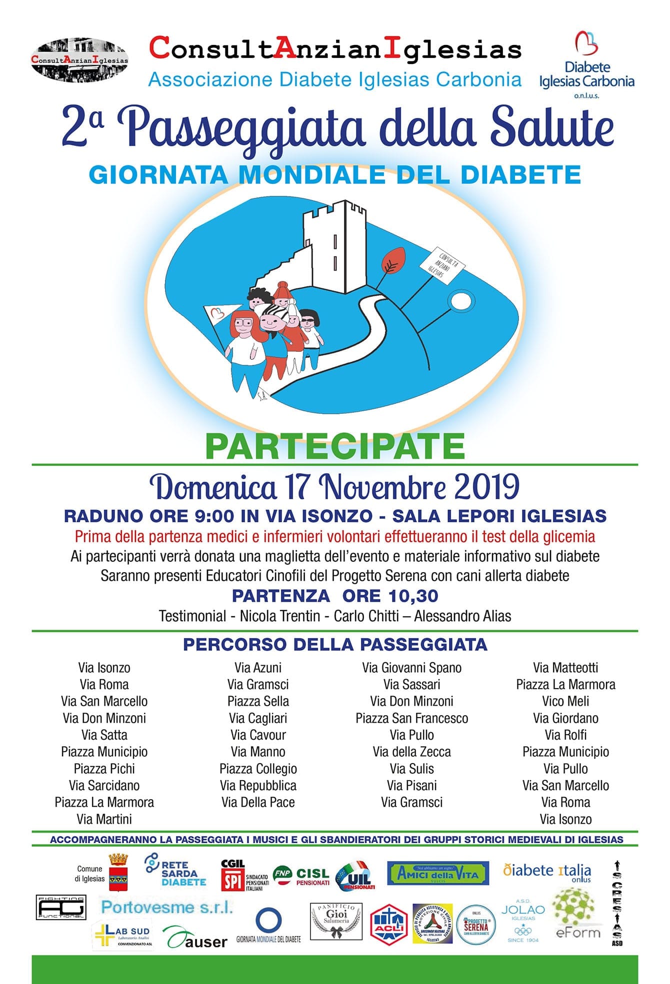La Consulta Anziani Iglesias e l’Associazione Diabete Iglesias Carbonia hanno organizzato la 2ª Passeggiata della Salute che si terrà ad Iglesias nella mattinata di domenica 17 novembre.