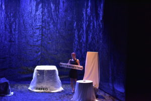 Orfeo si volta a guardare Euridice. Agisce in preda a un raptus? Clitemnestra uccide suo marito Agamennone. Agisce in preda a un raptus? Oreste uccide a coltellate sua madre Clitemnestra, agisce in preda a un raptus? Sono le domande che sgorgano naturali assistendo allo spettacolo. Che è costruito su un tessuto testuale che trae spunto e intreccia Omero (“Odissea” e “Iliade”), Ovidio (“Metamorfosi” e “Heroides”), Apuleio (“Metamorfosi”) con Cesare Pavese (“Dialoghi con Leucò”), Marguerite Yourcenar (“Fuochi” e “Chi non ha il suo Minotauro?”), Gesualdo Bufalino (“L’uomo invaso”), Roberto Calasso (“Le nozze di Cadmo e Armonia”).