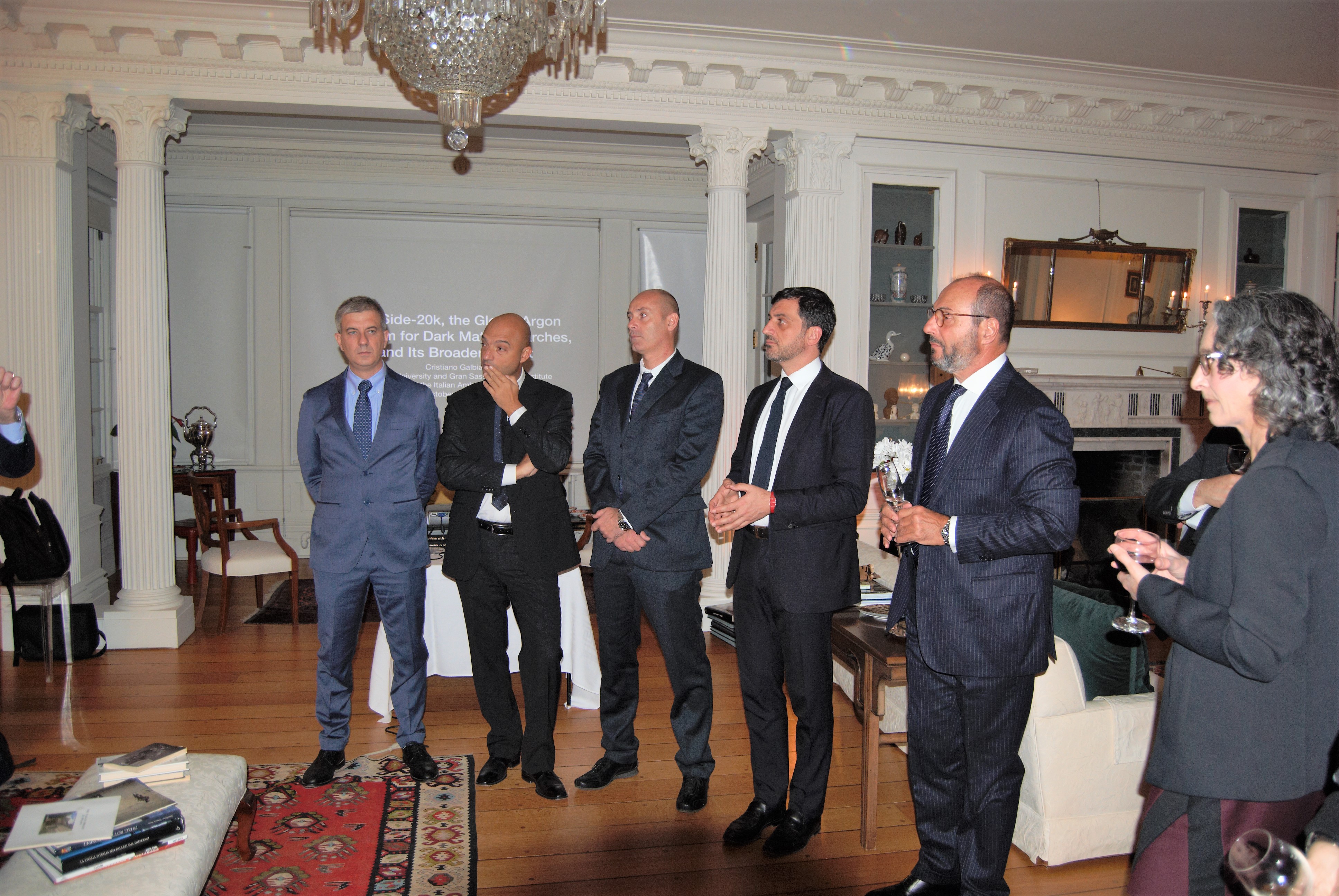 La missione è stata caratterizzata anche dall’incontro con l’ambasciatore italiano in Canada, Claudio Taffuri. L’incontro, organizzato dall’Addetto Scientifico dell’Ambasciata, Anna Galluccio, si è svolto nella residenza dell’Ambasciatore, a Ottawa dove hanno partecipato anche esponenti del Governo canadese, del mondo accademico del Paese del Nord America e i dirigenti dello SNOLAB di Sudbury. È stata l’occasione per illustrare le attività dei diversi laboratori scientifici e quanto si sta attuando in Sardegna con il Progetto Aria. L’ambasciatore Claudio Taffuri ha mostrato particolare interesse per le iniziative che riguardano l’Isola, in special modo il Sulcis, dove l’unione fra tradizione, scienza e tecnologia rappresentata dal Progetto Aria consente di creare le basi per un rilancio dell’economia, dello sviluppo e dell’occupazione. Un’esperienza dalle grandi potenzialità, è stato detto, da replicare anche in altre realtà territoriali.