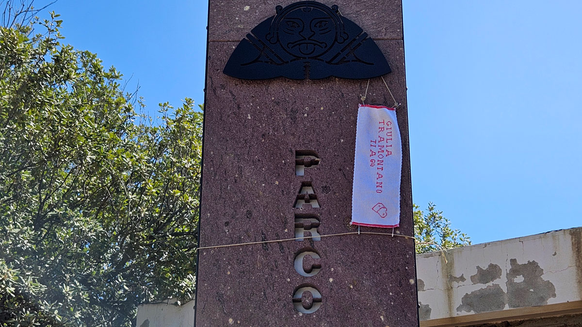 Il Parco Archeologico ha aperto le porte con una visita guidata, condotta con passione da Katia, alla scoperta del villaggio nuragico e punico. In questo contesto, Rosalba – insieme alla viandante Juliette e a Valentina del sitarcheologico – ha deposto, sulla stele del Parco sotto la figura del dio Bes (divinità protettrice delle persone fragili, delle donne incinte, delle bambine e dei bambini), il nastro di Giulia Tramontano e Tiago. Un rituale intimo, scandito da un mantra recitato a tre voci, culminato in un abbraccio tra le ragazze e in lacrime versate nel ricordo di Giulia e del figlio che portava in grembo, affidati alla protezione del dio Bes.