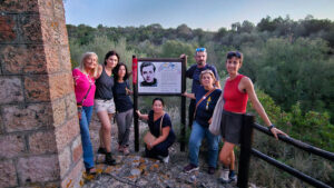 Da Monte Sirai, Rosalba e Juliette hanno proseguito verso la città di Carbonia, dove al Borgo di Caput Acquas la comunità si è ritrovata lungo il sentiero di Oretta per deporre un nastro rosso in memoria di Oretta Scalisi, insegnante coraggiosa uccisa nel 1957 mentre percorreva la strada di campagna verso la scuola di Piolanas.