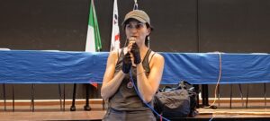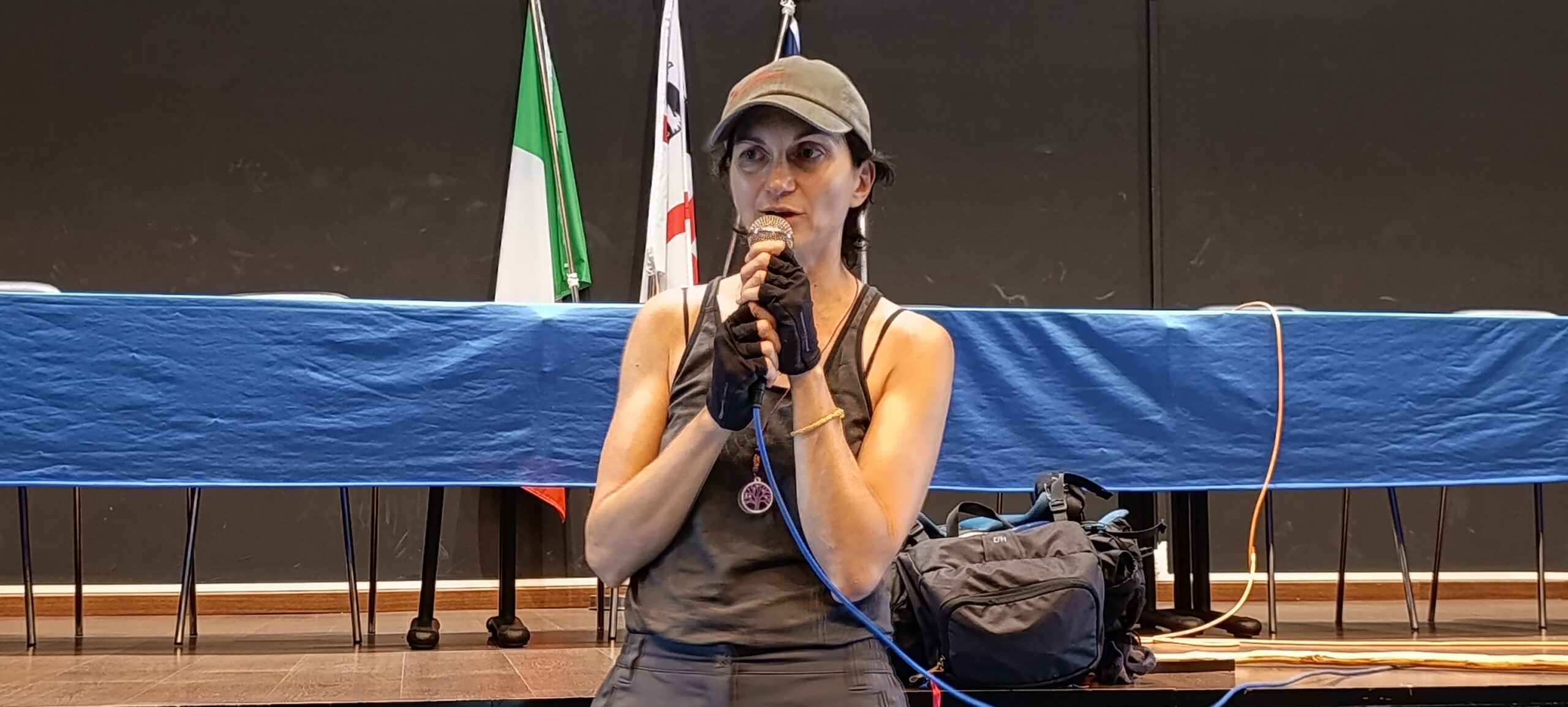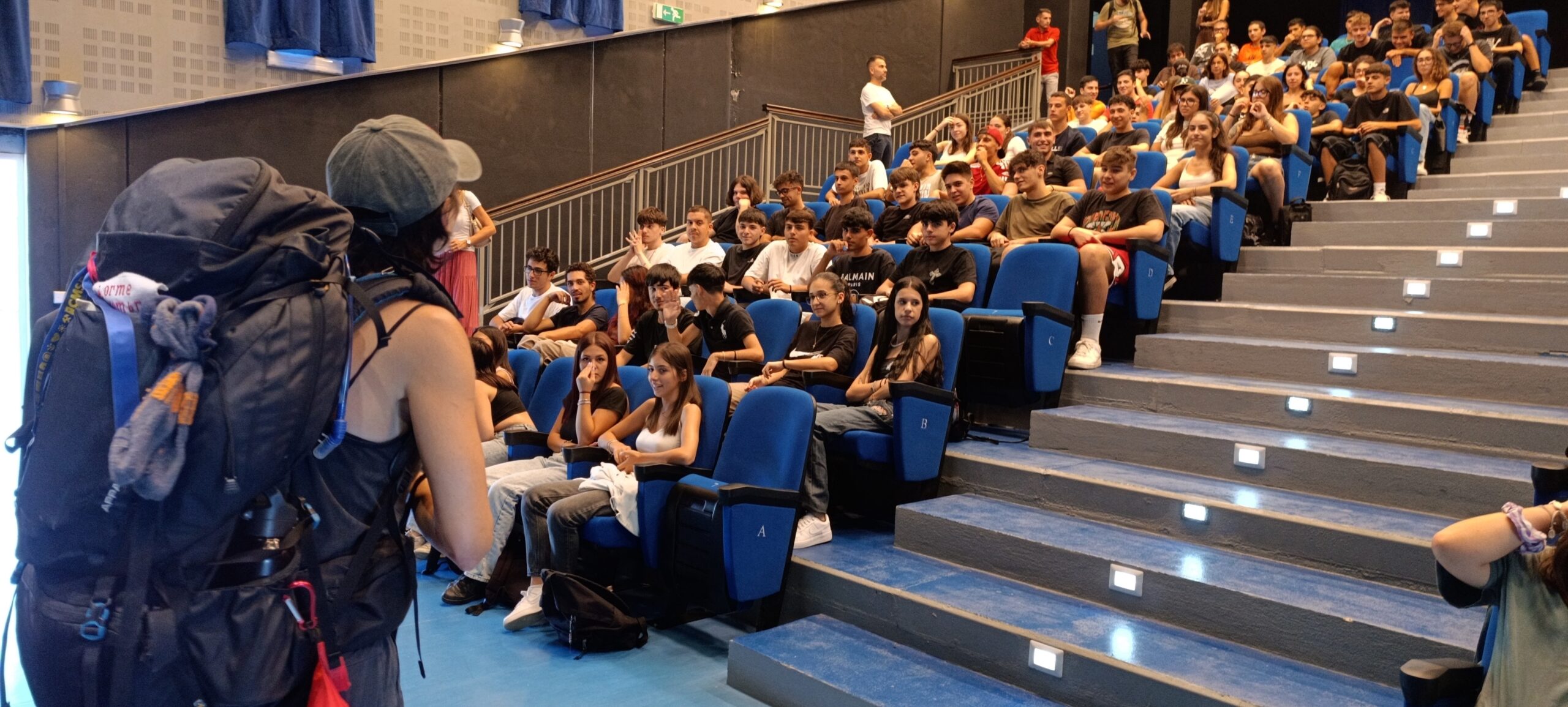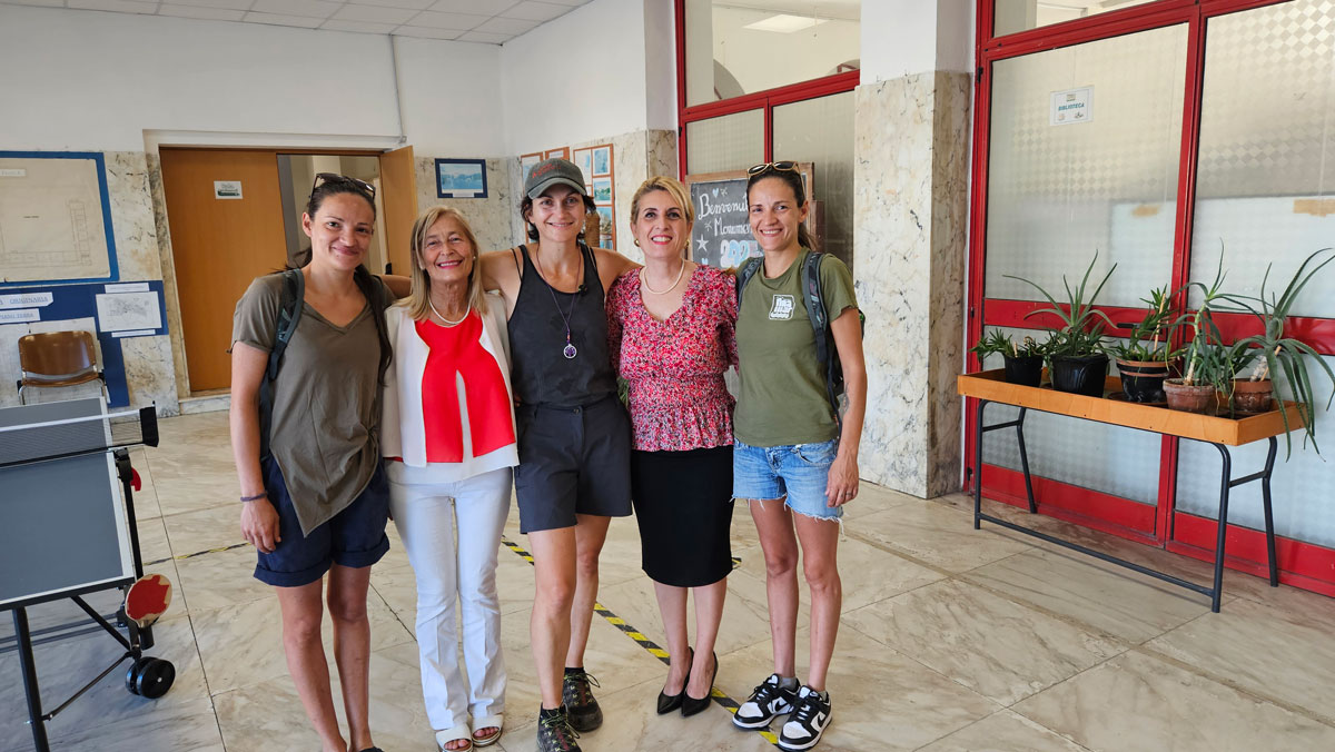 Anche l’Istituto di Istruzione Superiore G. M. Angioy ha partecipato attivamente predisponendo l’auditorium della scuola per accogliere la testimonianza dell’attivista viandante sotto gli occhi emozionati e attenti di più di 100 studentesse e studenti: «Le ragazze e i ragazzi dei corsi di Grafica e Comunicazione e di Informatica dell’Istituto Angioy hanno accolto oggi con emozione e interesse l’artivista Rosalba Castelli. L’Istituto ringrazia Rosalba poiché la sua sensibilità artistica e la profondità del messaggio hanno offerto ai nostri studenti e alle nostre studentesse spunti preziosi di riflessione e un’occasione autentica di crescita civile e personale», ha detto Teresa Florio, dirigente scolastica IIS G.M. Angioy.
