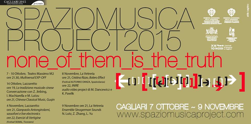 Con i concerti di domenica e lunedì alla Vetreria, Spaziomusica chiude la prima tranche del suo cartellone autunnale. Due appuntamenti in calendario per il prossimo mese di dicembre: il 10 va in scena “Sardegna madre”, rappresentazione in musica e danza dell’omonimo libro della scrittrice francese Patricia Bourcillier; un progetto di Fabrizio Casti (pianoforte), Alessandra Seggi (flauto) e Ornella D’Agostino (danza) coprodotto da Spaziomusica e Carovana SMI. Il 13 dicembre è invece in programma una performance audio/video del polacco Marek Choloniewski.